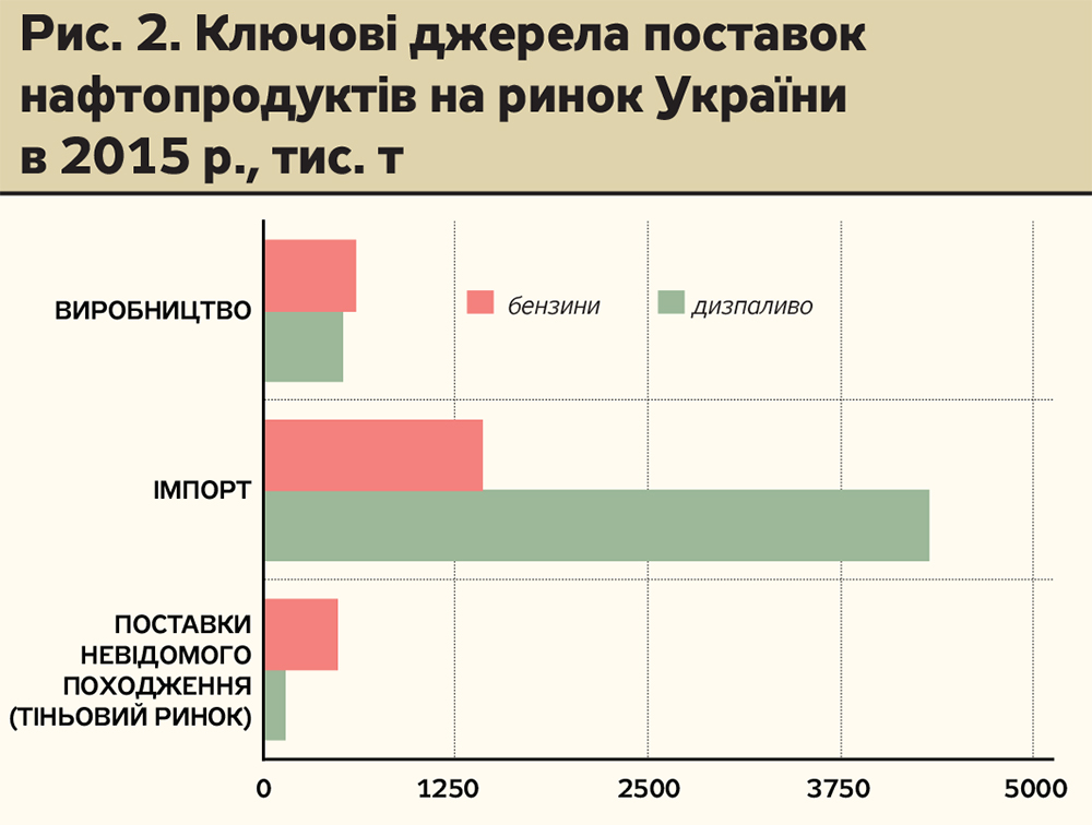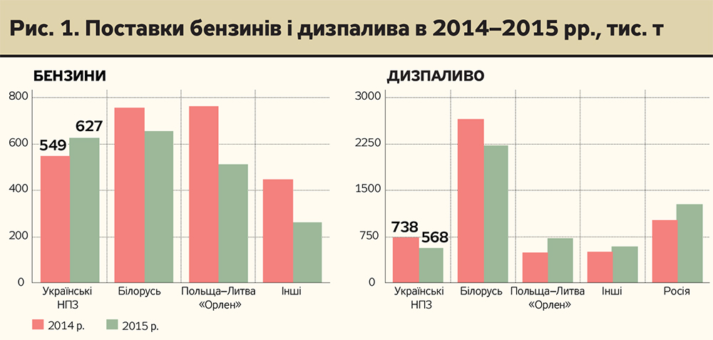 Загалом ринок нафтопродуктів України 2015-го забезпечували поставки з десяти країн і понад 20 НПЗ.