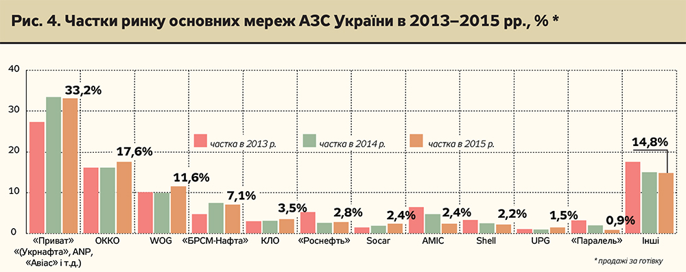Обвал продажів палива за готівку у 2015 р. становив 25%. У рейтингу проблем цього ринку крах реалізації - на першому місці. Набагато менший обсяг розподіляється на колишню кількість станцій, кожна з яких має колишні витрати на утримання. Це ще сильніше підстьобує конкуренцію, коли в хід ідуть усі методи.