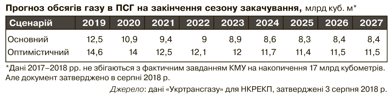 До речі, окрім програми по газопроводах до 2027-го, ухвалено (3 серпня 2018-го) і аналогічну по газосховищах на той самий строк. Цифри в ній дуже невеселі. Обсяги зберігання падатимуть за будь-яких сценаріїв. І ці цифри вражають (див. табл.).