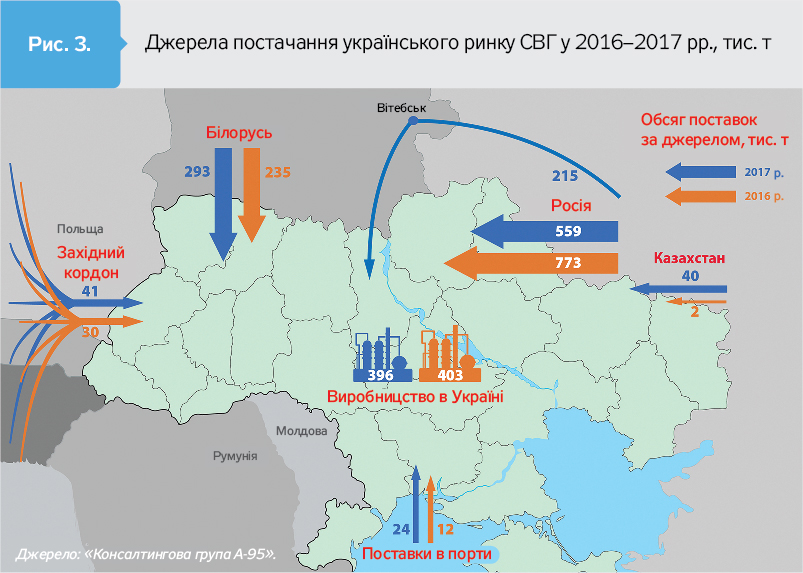 Та найпомітнішою та багатообіцяючою подією став вихід на український ринок "Тенгізшевройлу" (ТШО), найбільшого виробника СВГ у Казахстані. Раніше компанія транспортувала газ через Одесу, а з вересня розпочала контрактуватися з українськими трейдерами. "Довгі" договори на поставку СВГ у 2018 р. уже підписали кілька великих компаній. Поки завозиться близько 10 тис. т газу ТШО на місяць, але переговори тривають.
