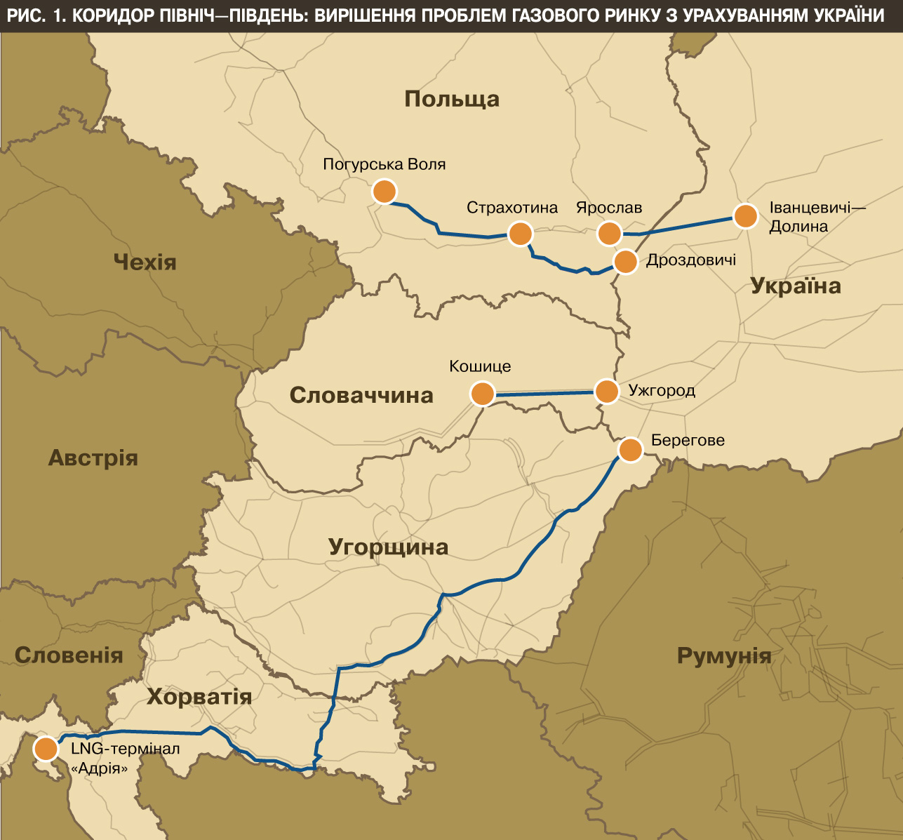 Наші найближчі європейські сусіди - Польща та Угорщина - готові включити Україну в маршрути європейського газового коридору Північ-Південь (див. рис. 1 на сайті DT.UA). І як потужного оператора ГТС, і як перспективного партнера та учасника Європейського Енергетичного співтовариства.