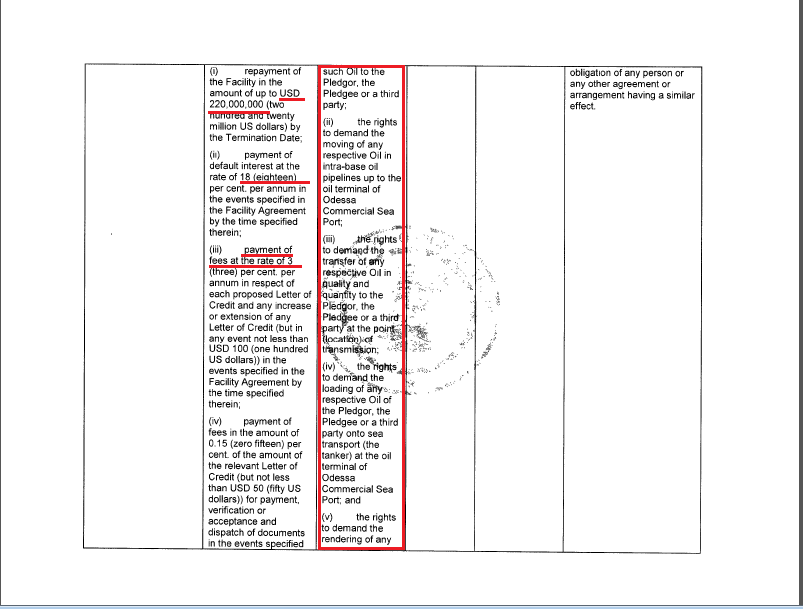 За заставу Soprema Trading надавала нафтопродукти, що перебувають на нафтовому терміналі Одеського торгівельного порту, а також перевозяться на танкерах компанією United Oil (BVI) Group Limited.