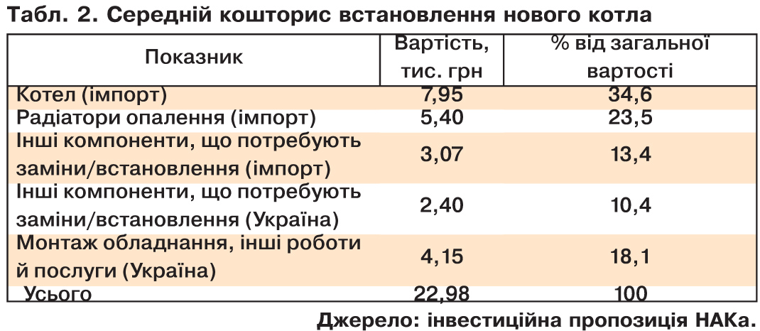 І це далеко не всі питання. Наприклад, передбачається, що левову частку обладнання попросту завезуть (за валюту) з Китаю. Так, у вартості типового встановлення котла (прийнято за 14 кВт) майже 72% припадає на імпортні компоненти.