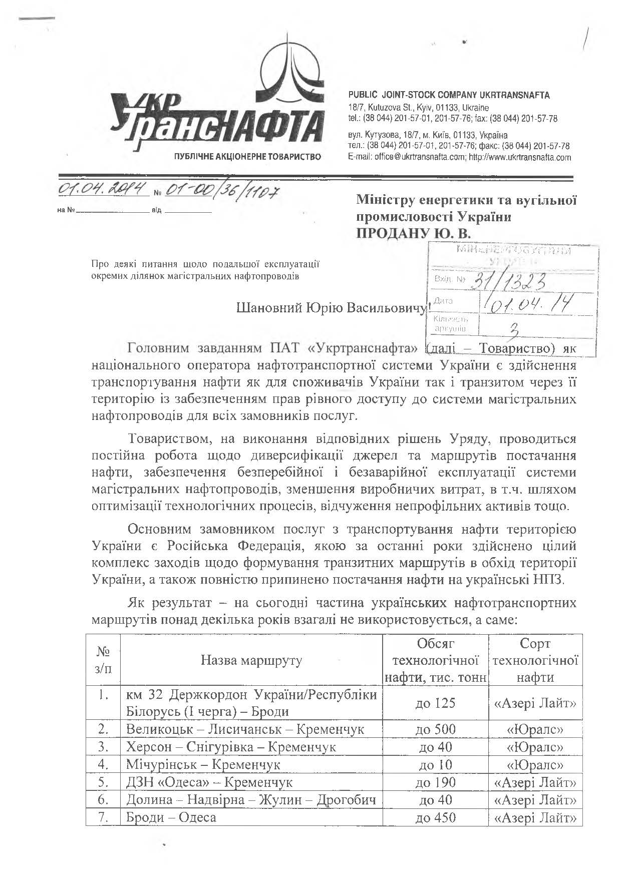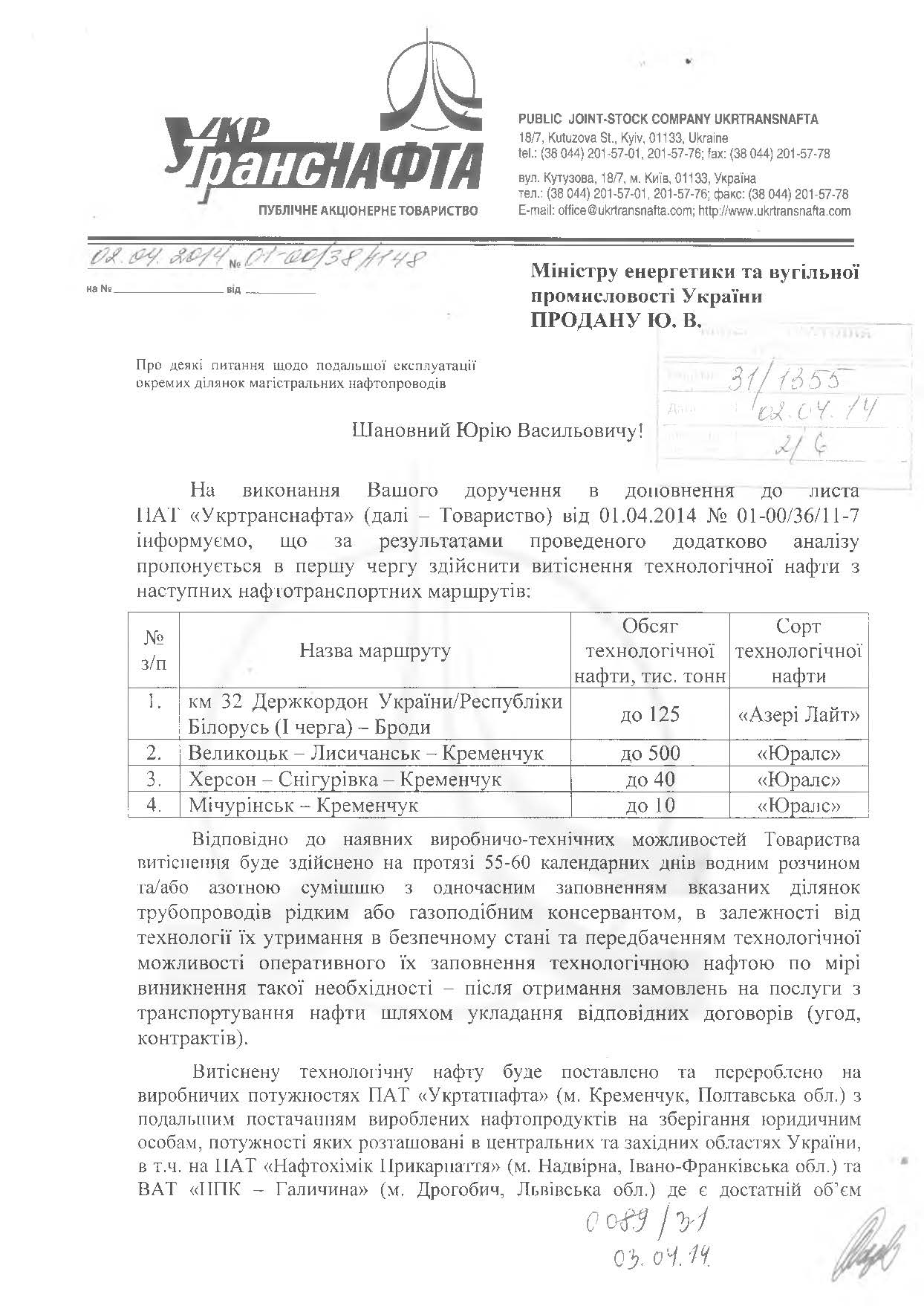 Розпочнімо з того, що відповідно до виявленої в архівах довідки, станом на 31 грудня 2012 р. обсяг технологічної нафти на балансі "Укртранснафти" становив 1,89 млн т. А в своєму першоквітневому листі пан Лазорко пише про 1,35 млн т. Майже третина обсягу кудись "випарувалася".