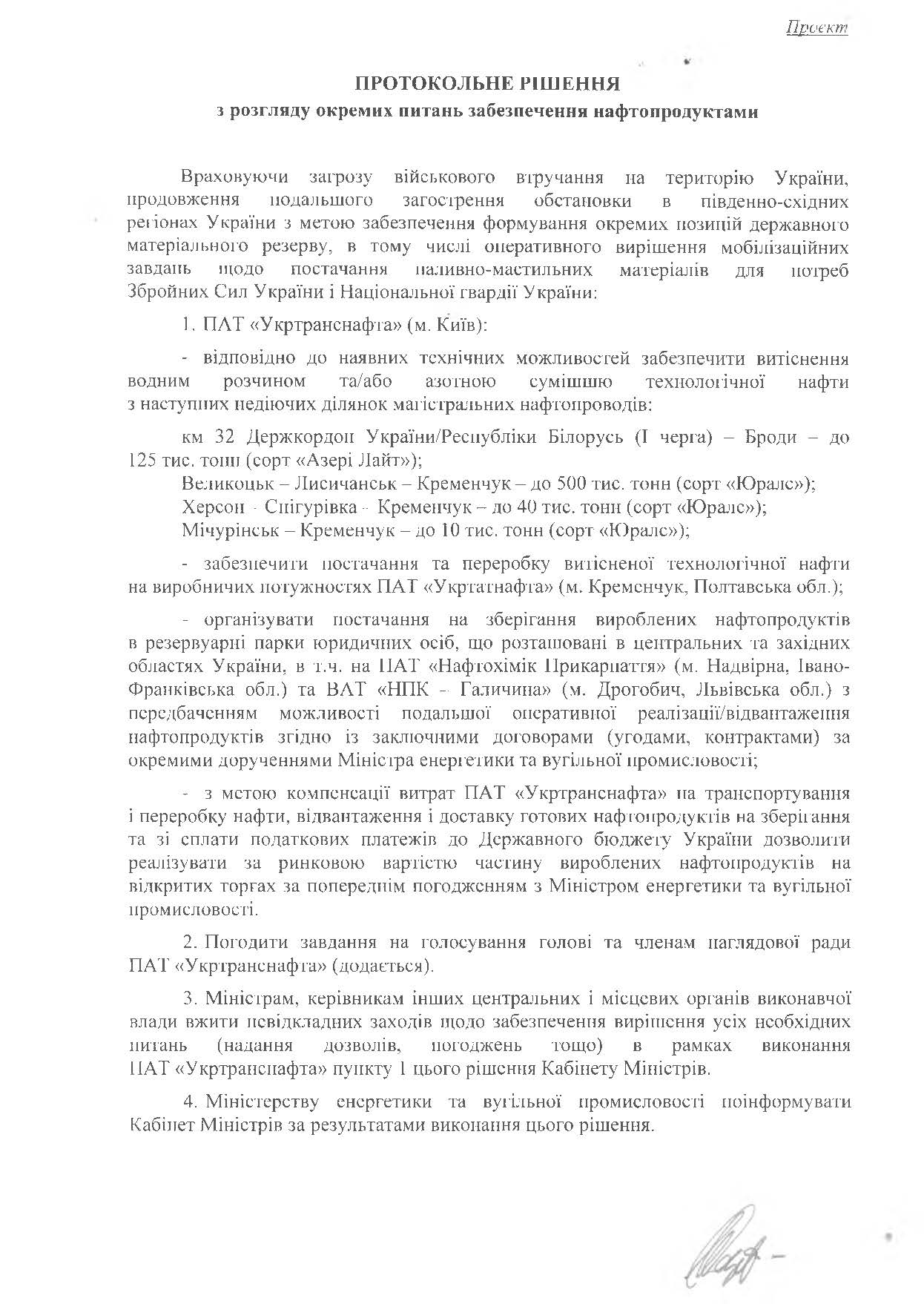 В ексклюзивному коментарі нашому виданню він заявив: "Ніхто не знає, скільки реально нафти в системі, ефект для держави неочевидний, імовірність остаточної втрати нафтопровідної системи у разі реалізації цього плану стовідсоткова". Судячи з усього, не очікував такої принциповості від співробітників й Юрій Продан. "Ми поки що це питання відпрацьовуємо. Може, варто не всю взяти, а частково. Перше: треба перевірити, скільки там справді є цієї нафти, її кількість ми перевіримо ще раз і тільки після такої перевірки приймемо рішення", - сказав міністр інформагентству "Інтерфакс-Україна".