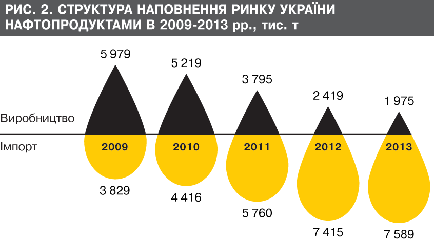 Нафтопереробна галузь країни продовжує своє вільне падіння. У 2013 р. обсяги виробництва знову знизилися і, схоже, досягли дна. Завантаження тих потужностей, які щось переробляли, становило 25%. Частка внутрішніх виробників нафтопродуктів на внутрішньому ринку знизилася до 20%. Найсумнішим є те, що світла в кінці тунелю не видно, його могли б засвітити інвестиції, але їх немає. Це автоматично означає, що відставання від конкурентів і просто вимог часу збільшується і загрожує стати нездоланним.