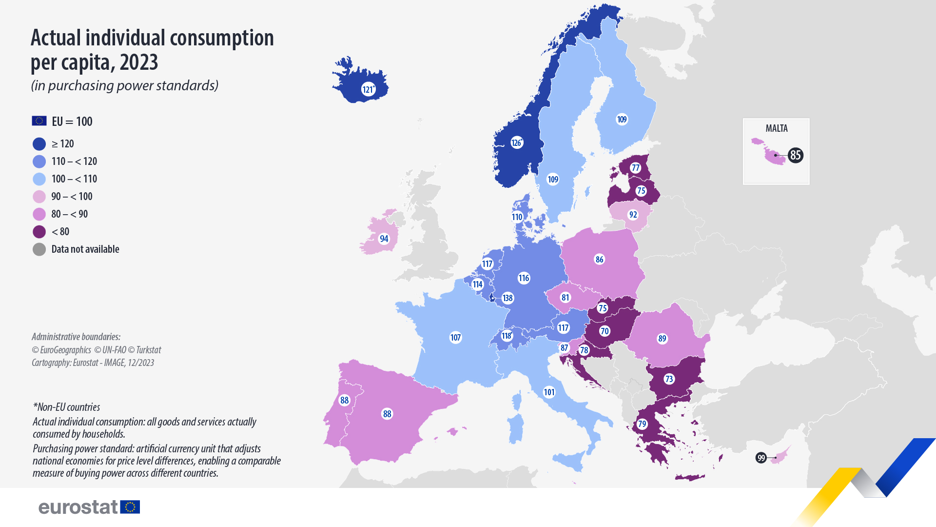 Де найкомфортніша країна в ЄС за рівнем життя і найнижчий рівень у єврозоні?