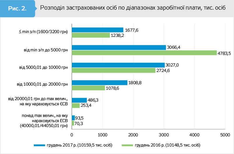 - зросла на 500 тис. кількість осіб, які отримують зарплату в діапазоні понад МЗП - до трьох МЗП;