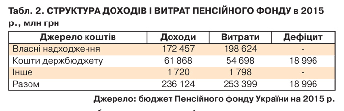 На сьогодні з 236 млрд грн, які має акумулювати фонд у 2015 р., 61 млрд - це кошти держбюджету, і при цьому дефіцит фонду все одно становить майже 19 млрд. Одержуваних від платників податків коштів не вистачає. Якщо 2005-го частка коштів держбюджету в структурі доходів ПФ становила 8%, то цього року перевищила 24%. Усі спроби уряду вивести з "тіні" зарплати провалилися. Державна фіскальна служба відзвітувала, що за січень-квітень надходження від єдиного соціального внеску становили 55,7 млрд грн. Навіть приблизні підрахунки свідчать про те, що за чотири місяці ця сума мала становити щонайменше 57 млрд. Тобто надходження від ЄСВ, навпаки, знижуються, лише погіршуючи фінансовий стан ПФ.