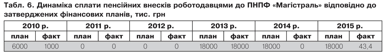 У 2014–2015 рр. суми на сплату пенсійних внесків до фонду за укладеними роботодавцями пенсійними контрактами було визначено фінансовими планами залізниць на рівні 2013 р. Відповідно до ч. 7 ст. 20 Закону України "Про недержавне пенсійне забезпечення" участь або неучасть працівників у сплаті пенсійних внесків до пенсійного фонду не може бути умовою здійснення роботодавцем відрахування пенсійних внесків на користь цих працівників до фонду. Тобто внески мають сплачуватися роботодавцями, які уклали пенсійні контракти на користь усіх працівників - учасників фонду, у повному обсязі в межах сум, передбачених фінансовим планом, незалежно від сплати внесків працівниками. Та не так сталося, як гадалося. На пенсійні рахунки залізничників - учасників фонду роботодавцями було перераховано менш як 1% запланованих коштів.