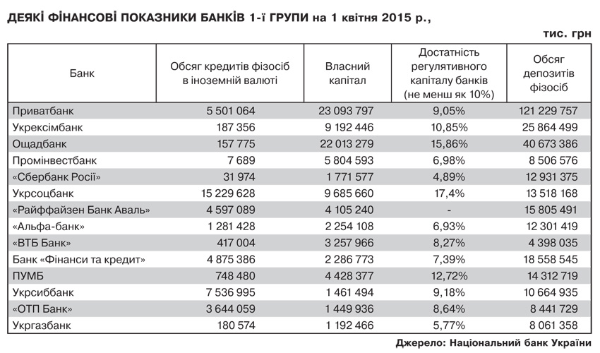 Усі перелічені вище банки входять до групи найбільших і є лідерами із залучення депозитів населення. Їхні проблеми, викликані виконанням норм закону №1558-1, позначаться на всій банківській системі та, безумовно, на збереженні заощаджень їхніх вкладників. Тобто на догоду позичальникам валютних кредитів ми готові ризикнути заощадженнями решти громадян і стабільністю всього фінсектора. Чому за списання валютних кредитів мають заплатити вкладники збанкрутілих банків і платники податків, за чий рахунок, швидше за все, покриватиметься докапіталізація фінустанов?