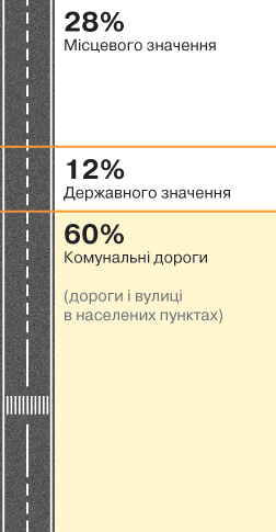 Трохи фактів. Довжина дорожньої мережі в Україні - 429 тис. км. З них "Укравтодор" обслуговує 40% доріг (169 тис. км). За решту - а це 259 тис. км комунальних доріг (усі дороги в населених пунктах) - несе відповідальність місцева влада: міські, районні і сільські ради (див.схему).