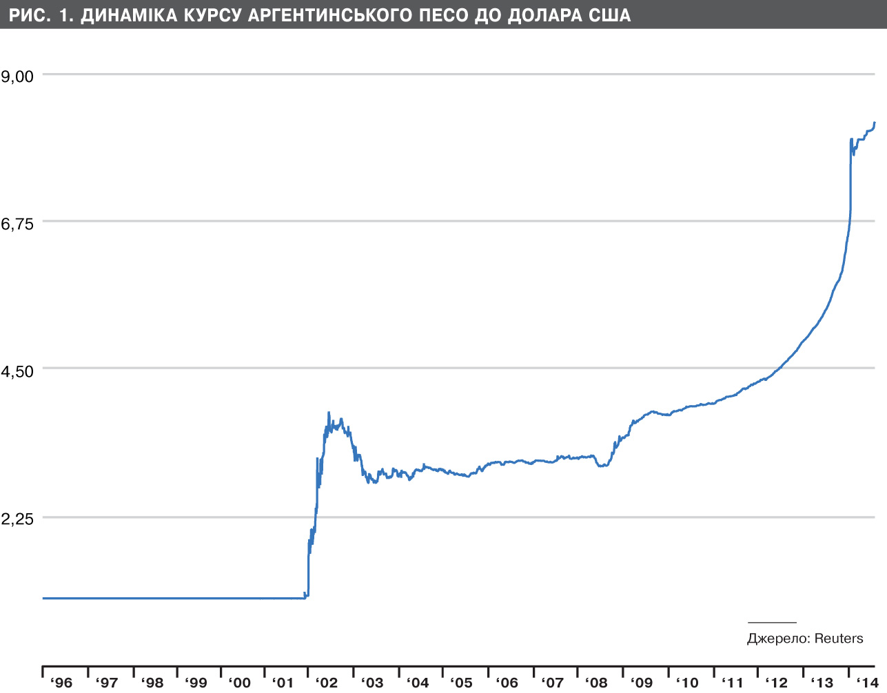 Для пересічного аргентинця згадування про 2001-й більш ніж болюче. Тоді країна визнала себе неспроможною платити за зобов'язаннями, які накопичувалися та зростали протягом трьох десятиліть. Довелося відмовитися від головного завоювання "латиноамериканської стабільності" - фіксованого обмінного курсу песо до долара, який у рамках currency board підтримувався на рівні 1:1. У перший місяць 2002 р. песо девальвувало вдвічі, а вже через рік національна валюта Аргентини коштувала дешевше в 3,5 разу.