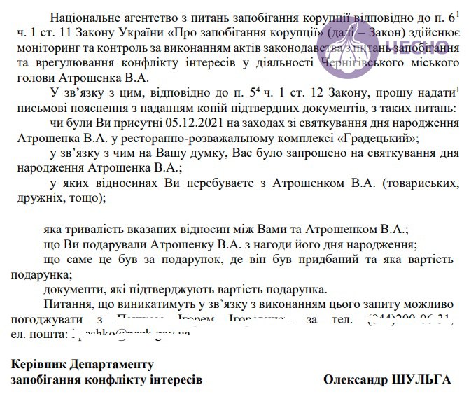 — Так. Я покажу вам цікавий запит від НАЗК від 30 травня 2022 року стосовно того, хто й що дарував мені на день народження 5 грудня 2021 року. Коли я його прочитав, то спочатку не повірив своїм очам.