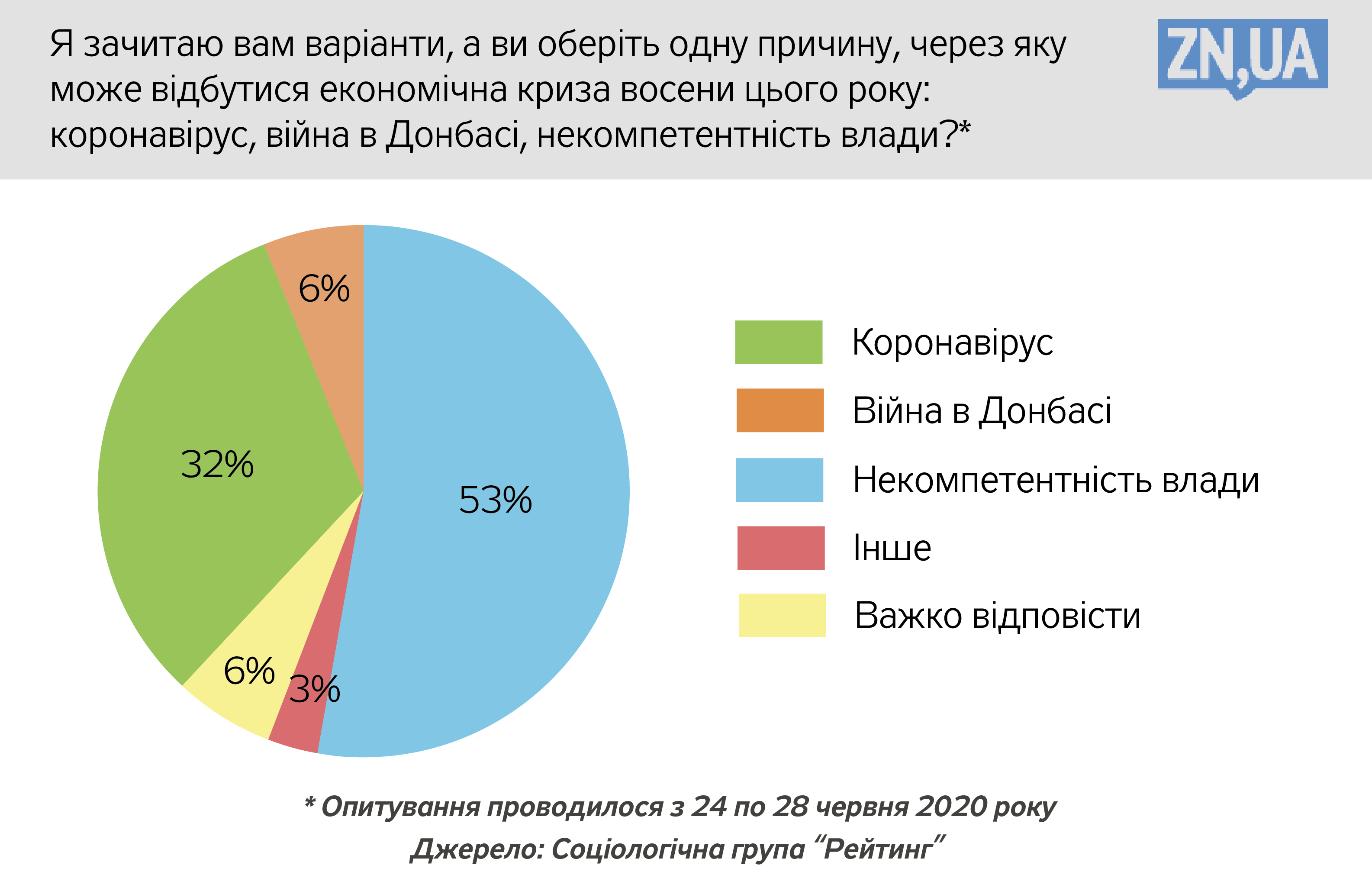При цьому основною можливою причиною майбутньої осінньої кризи 53% громадян назвали некомпетентність чинної влади.