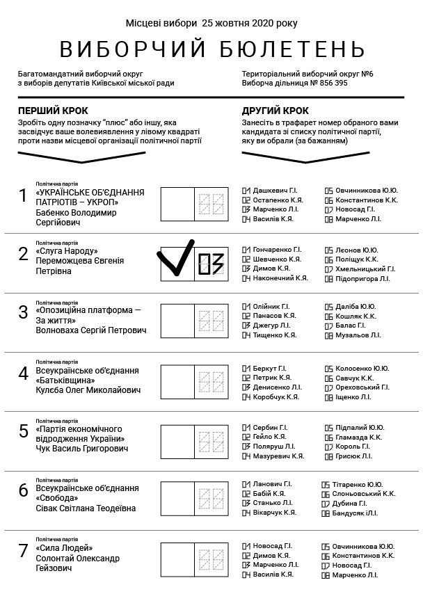 «Новий, затверджений профільним комітетом дизайн виборчого бюлетеня змінює всю філософію виборчої системи, — додає Ольга Айвазовська. — Попередній варіант сприяв закритості списку. Він виглядав так, що спочатку йшов увесь список партій через кому. Потім — квадратик для галочки й лише аж у кінці — квадратик для номера кандидата зі списку партії, яку він вище підтримав. Зрозуміло, що людина проголосує тільки за партію, а про квадратик унизу — забуде. Тепер шансів проголосувати і за партію, і за кандидата більше.