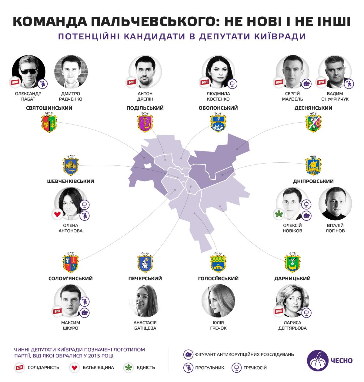 Шестеро представників партії «Перемога Пальчевського» у разі проходження їхньої політсили до Київради могли б отримати мандат за квотою 25%. П’ятеро з них працювали в Київраді упродовж 2015–2020 років.