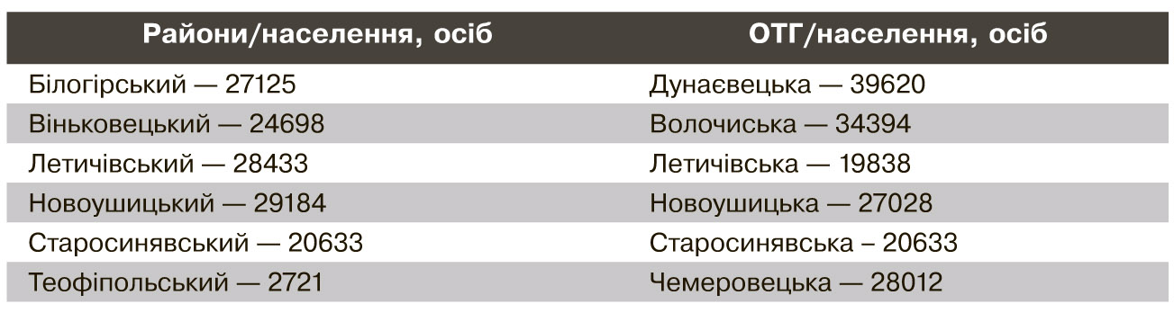 Частина районів сьогодні менші чисельно і слабші фінансово, ніж новоутворені ОТГ. Ось приклад із Хмельницької області: