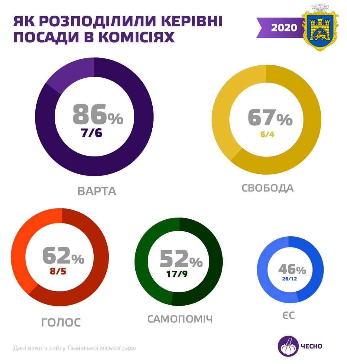 Понад те, уже зараз Садовий втратив контроль над найбільш стратегічною бюджетною комісією. Якщо за попередньої каденції її очолювала представниця «Самопомочі», то зараз тут головує «Варта». Загалом три політичні сили більшості нині мають голів у семи з 12 комісій ради.