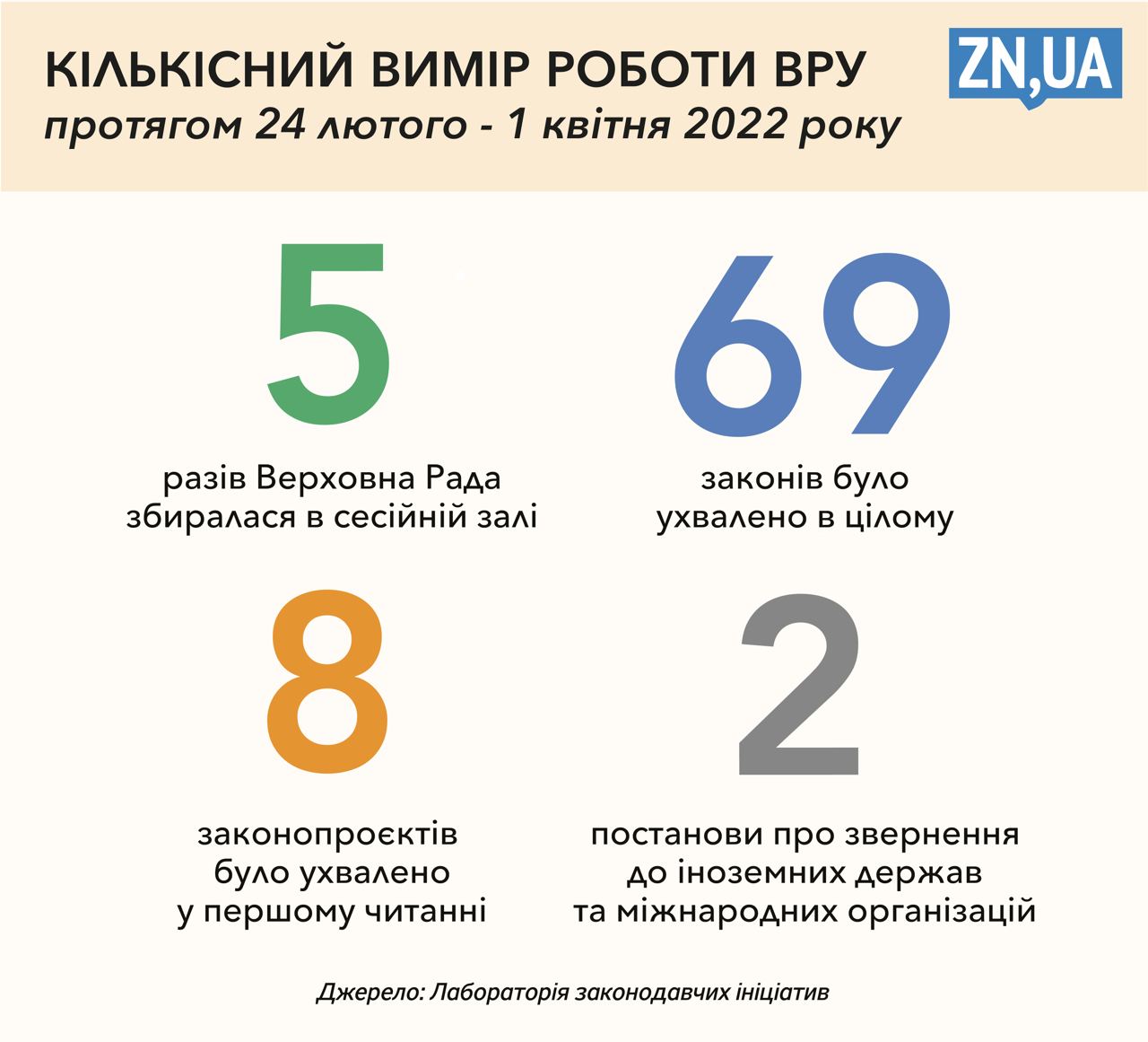 23 лютого 2022 року Верховна Рада затвердила введення надзвичайного стану. Однак він так і не встиг початися, адже після ракетних і бомбових ударів, зранку 24 лютого, було запроваджено воєнний стан. Вже більше місяця Україна живе у воєнному стані. Верховна Рада не була паралізована і протягом цього місяця працювала. Але що саме робив парламент протягом місяця війни? Відповідь на це питання має декілька вимірів.