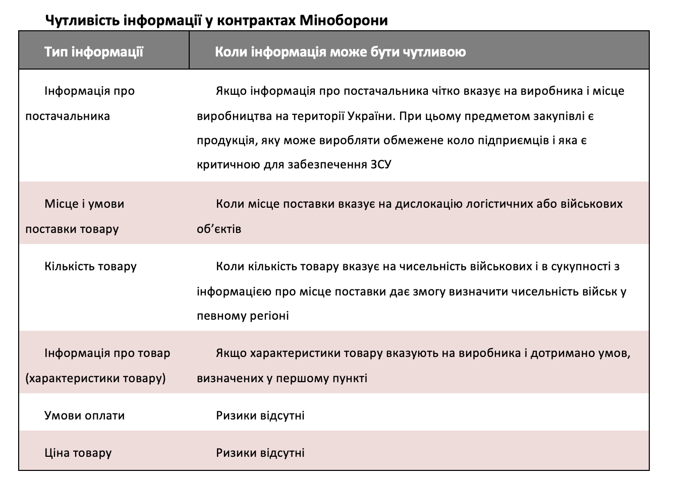 Які відомості про контракти Міноборони можуть містити чутливу інформацію