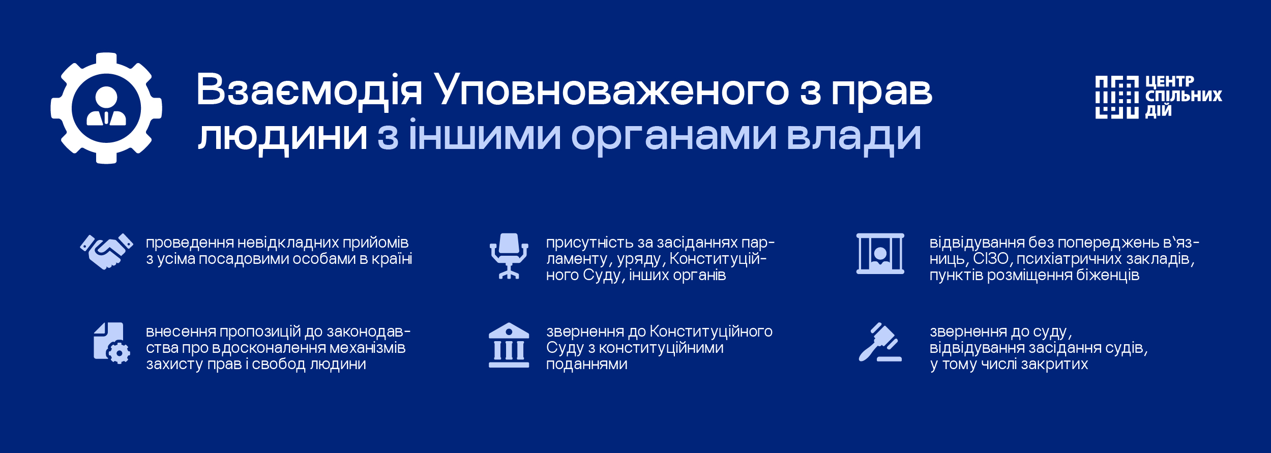 Уповноважений Верховної Ради України з прав людини — це парламентська структура, яка контролює дотримання на території України прав та свобод кожного. Якщо ваші права порушили держава, місцеві чиновники, роботодавець чи будь-хто ще, ви можете звернутись до Уповноваженого. Він має інструменти для належного реагування.