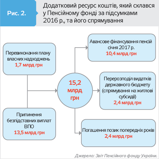 - Направлення 2,4 млрд грн з бюджету ПФУ на виплати субсидій - це абсолютно нормальне управлінське рішення, тому що це гроші державного бюджету, які "дотують" ПФ. Це не гроші ПФ, а невикористані кошти держбюджету, виділені на підтримку ПФУ 2016 року.
