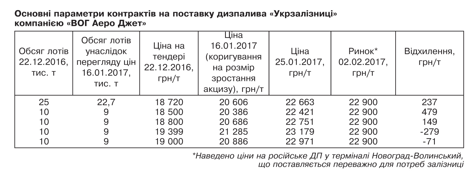 25 січня 2017 р. ЦЗВ заявив про підвищення закупівельних цін на дизельне паливо на вимогу компанії "ВОГ Аеро Джет". Залізничники взяли під козирок, у результаті чого дизпаливо подорожчало майже на 20%, або на 4000 грн/т порівняно з ціною, обіцяною трейдером на тендерах 15 і 22 грудня 2016 р..