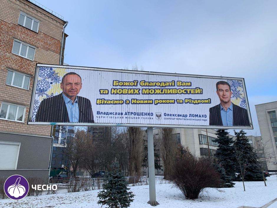 А поки секретар міськради не визначився, Чернігів та околиці (в межах 70 кілометрів) завішані бордами з різдвяними привітаннями.