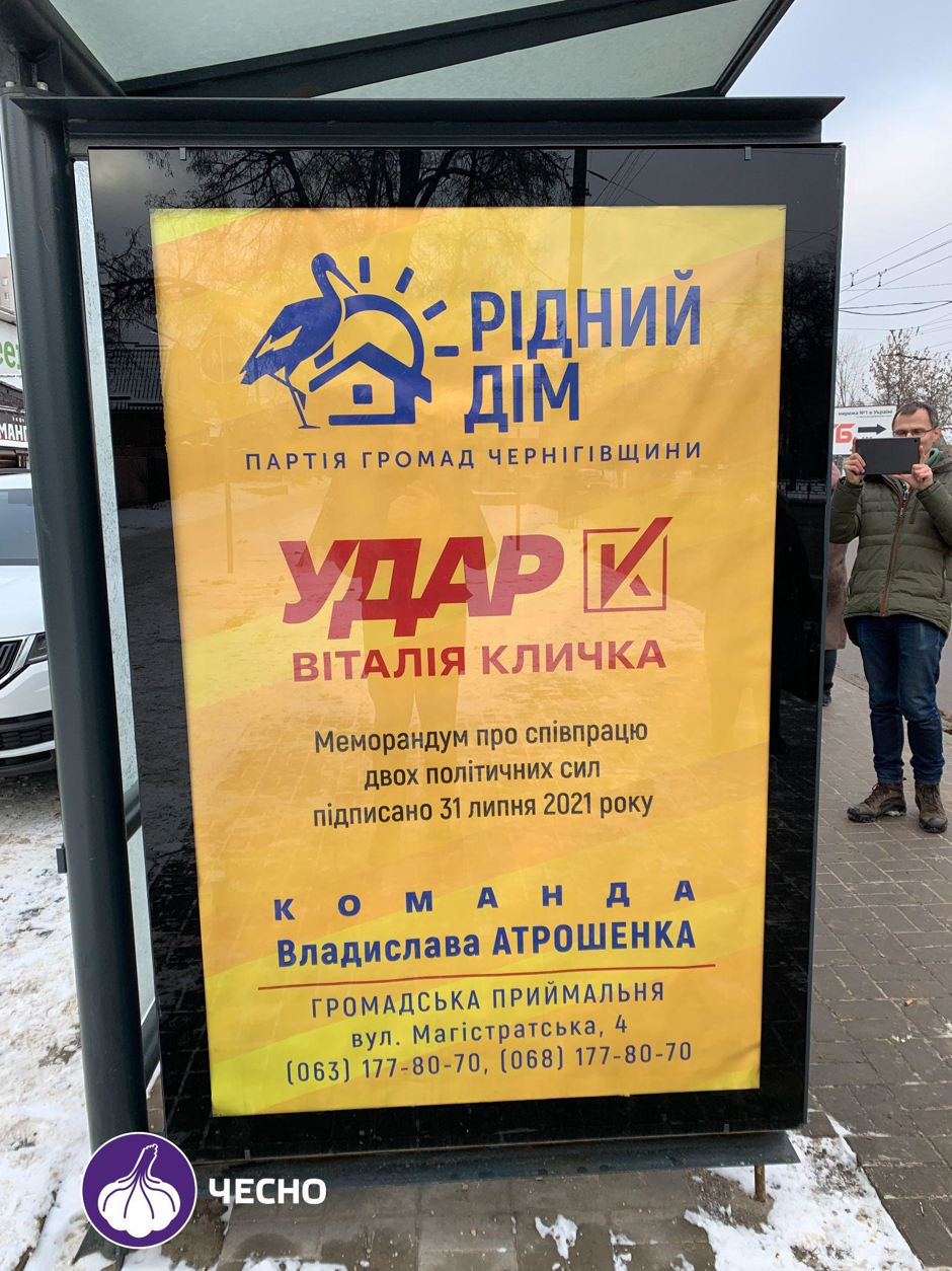 У Чернігові ЧЕСНО виявив хіба кілька зупинок громадського транспорту без такої реклами.