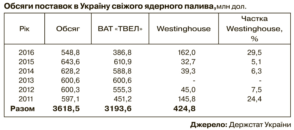Торік 30% закупленого палива для АЕС було саме від Westinghouse (частина для створення резервів). Воно вже завантажене у два блоки Южно-Української АЕС і один блок Запорізької, і використання цього палива планується розширювати. 2016-го було закуплено п'ять партій, план на поточний - шість поставок. Тож для України питання виживання Westinghouse важливе.