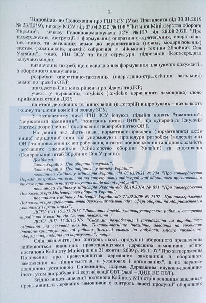 Я не зупинятимуся на аналізі Положення про Генштаб і Міноборони, а також на цілях і завданнях створеного за рішенням уряду у 2017 році Державного науково-дослідного інституту випробувань і сертифікації озброєння та військової техніки ЗСУ. Усі матеріали і схеми з докладним описом нинішнього й майбутнього функціоналів МО й ГШ із супроводу процесу створення та випробувань ОВТ перебувають у редакції ZN.UA і можуть бути передані розслідувачам будь-коли.