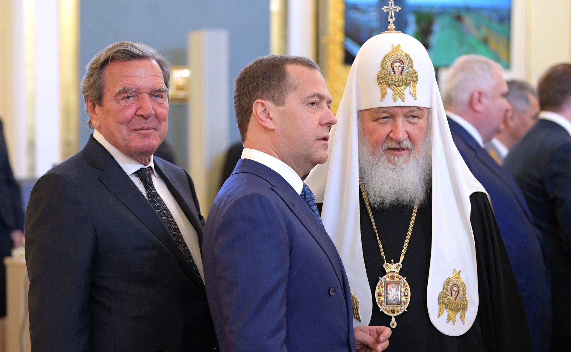 Найближчим до Путіна того дня був Дмитро Медведєв із дружиною ліворуч і колишнім канцлером Німеччини Герхардом Шредером - праворуч, ще правіше - патріарх Кіріл. Упритул за їхніми спинами - колишній агент Штазі й нинішній член наглядових рад і правлінь кількох російських енергетичних компаній Матіас Варніг. Лівий фланг цієї могутньої купки прикривала вдова колишнього російського президента Наїна Єльцина, правий - на певній віддалі міністр оборони Сергій Шойгу. Далі за їхніми спинами - найближчі помічники й члени Радбезу, зокрема його постійні члени з-поміж міністрів - Володимир Колокольцев (МВС) і Сергій Лавров (МЗС). Вони, безперечно, близькі до російського президента, але щоб не було сумнівів, якою мірою, - в одному ряду з ними стояв американський кіноактор Стівен Сігал, котрий прийняв російське громадянство.