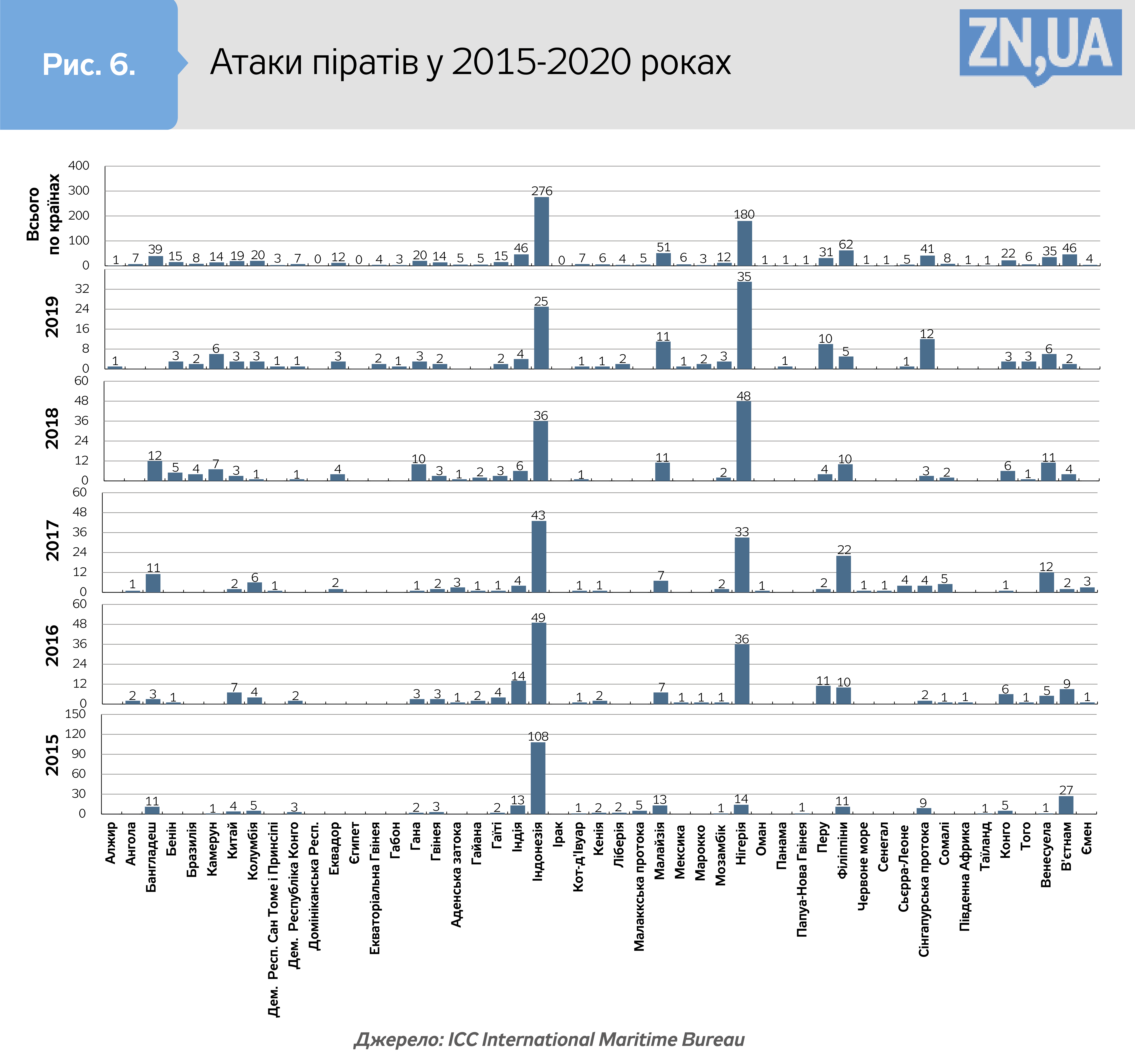 На країни, які омиваються водами Гвінейської затоки, за останні неповні п'ять років припадає 27% усіх нападів піратів у світі. Особливо небезпечне узбережжя Нігерії. З 2015 р. тут зафіксовано 180 нападів, що є другим після Індонезії показником у світі.