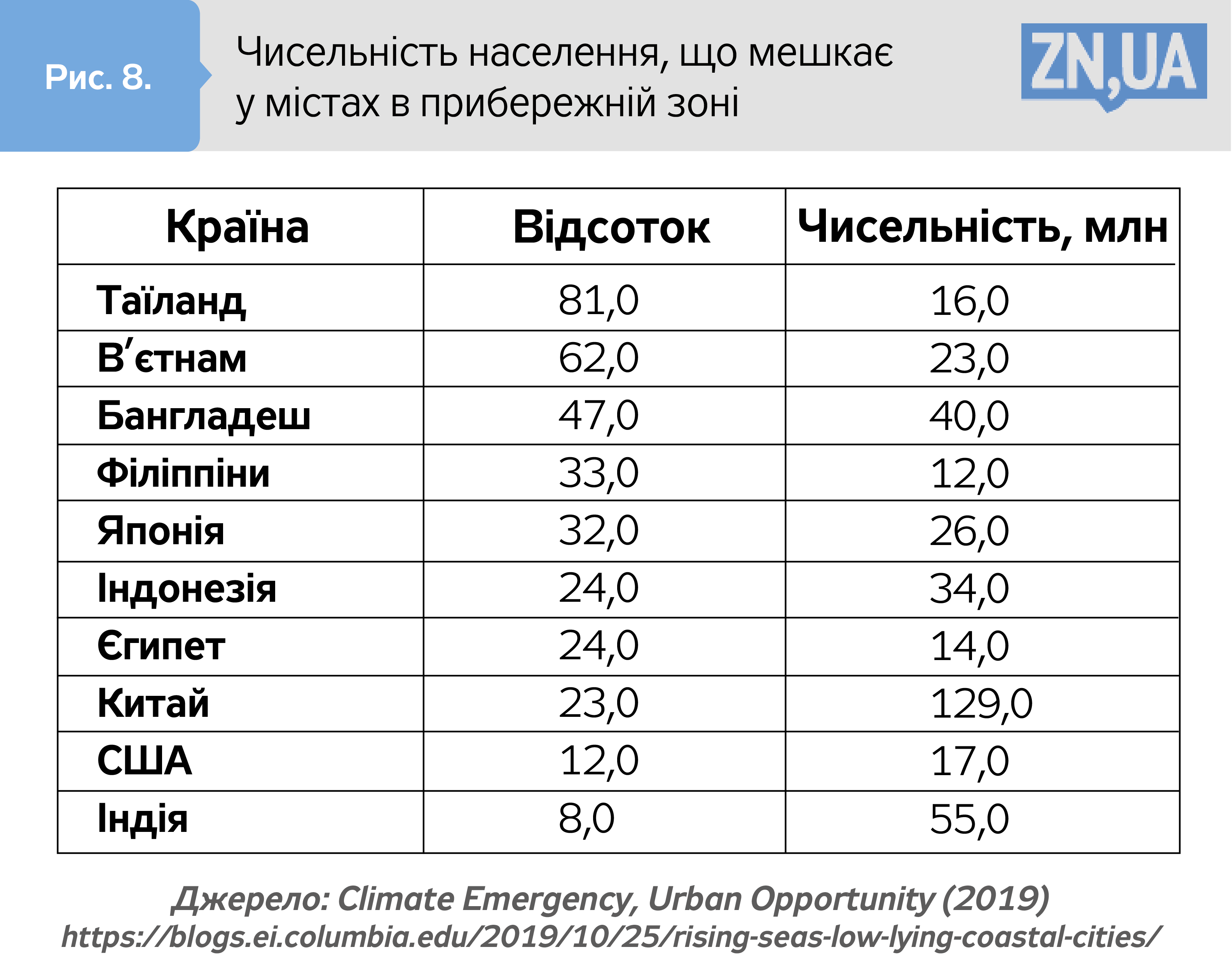 Проблем може додати й той факт, що у світі зростає кількість населення в містах на узбережжі нижче від 10 метрів над рівнем моря. За 15 років (2000–2015) населення в таких містах зростало швидше, ніж деінде (1,98% за рік у прибережних зонах проти 1,62% в інших містах). І це зростання відбувається не за рахунок будівництва нових, сучасних районів для успішних нових мешканців, а за рахунок нетрів, які утворюються поблизу мегаполісів. Люди в цих бідних прибережних районах живуть за рахунок риболовлі та торгівлі. За даними ООН, 97% рибалок у світі — це мешканці країн, що розвиваються. Через кліматичні зміни популяція риби на планеті з 1930 року зменшилася на 4,1%. Риби стає менше, а рибалок — більше. Якщо ж врахувати, що рівень світового океану підвищується у 2,5 разу швидше, ніж у XX столітті, то картина виглядає вельми перспективною для збереження і навіть поширення піратства у світі.