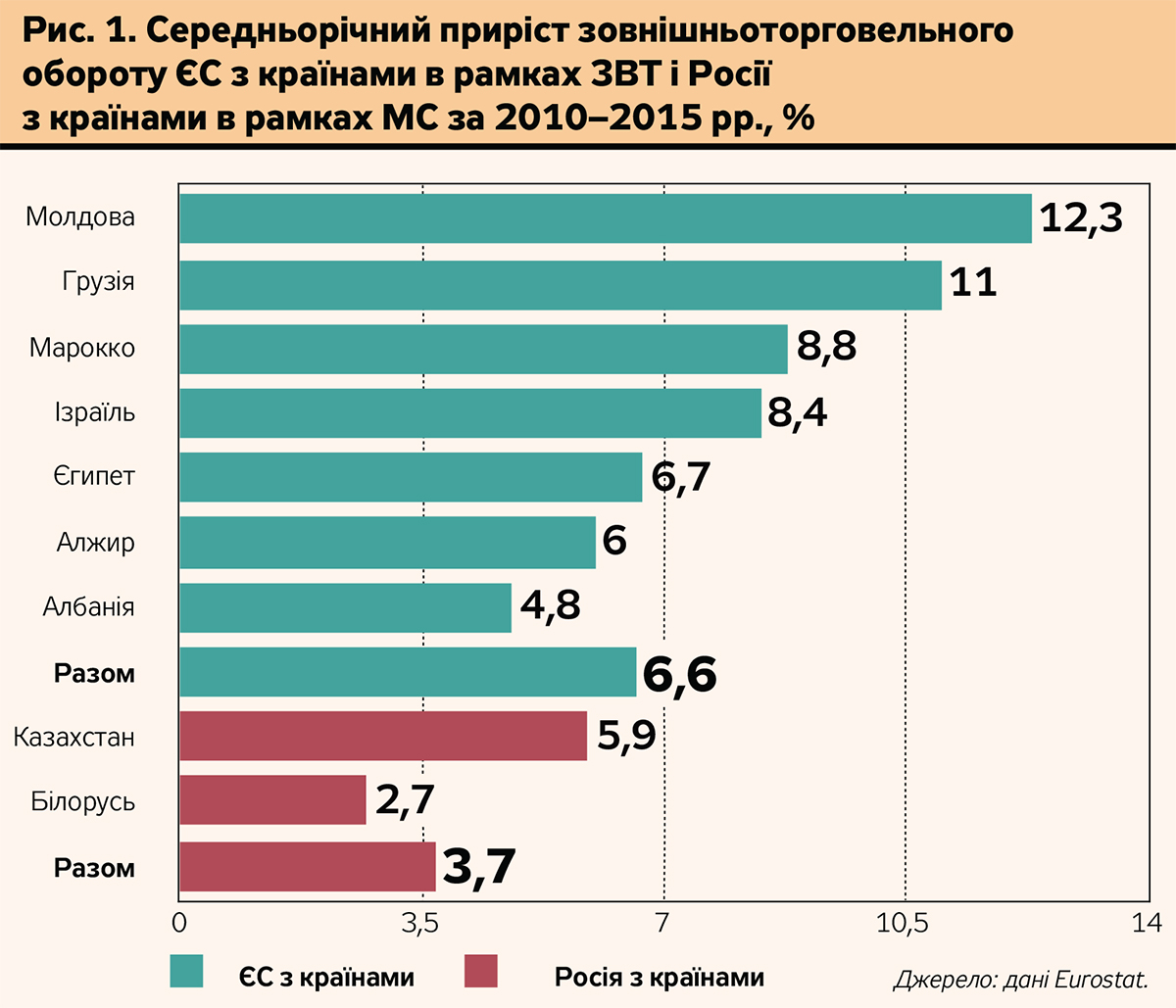 Почати напевне варто з основного - із сумнівів у доречності ЗВТ з Євросоюзом. І хоча про це багато вже сказано і написано у 2010–2015 рр., але постійно виникають нові обставини, включаючи перші фактичні дані статистики про торгівлю України з ЄС. Насамперед доречно нагадати, що після 1998 р. Європейський Союз уклав угоди про зону вільної торгівлі з 20 країнами, зокрема з Тунісом, Марокко, Ізраїлем, Йорданією, Єгиптом, Алжиром, Македонією, Албанією, Чорногорією, Молдовою, Грузією. В усіх перелічених країнах за 2010–2015 рр. обсяги торгівлі з ЄС зросли. Більш того, динаміка зростання торгівлі цих країн з ЄС у рамках ЗВТ виявилася значно вищою, ніж у Казахстану і Білорусі з Росією в рамках Митного союзу. Отже, Україна не перша держава, що зробила кроки до інтеграції в європейський ринок. При цьому досі жодна з країн, які уклали угоду про вільну торгівлю з ЄС, не пошкодувала про своє рішення.