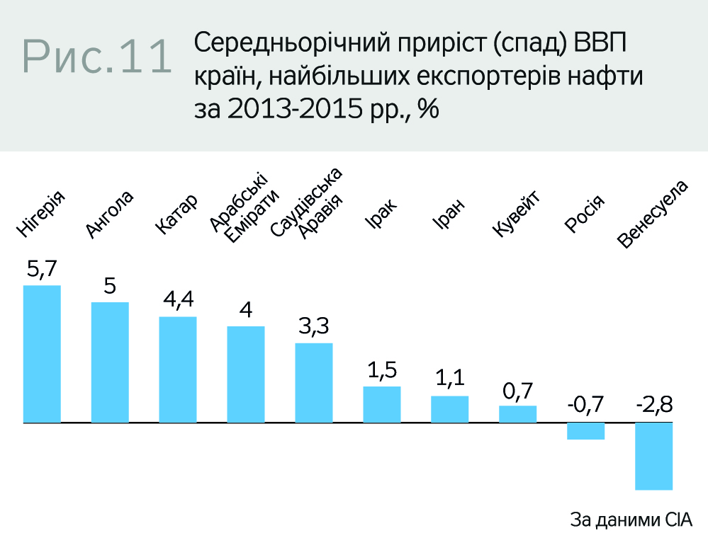 Про негативний вплив сировинно-енергетичної структури економіки Росії свідчить порівняння динаміки її розвитку з іншими країнами - найбільшими експортерами нафти, на які припадає до 60% світового експорту нафти. У цій групі країн Росія, слідом за Венесуелою, має найгіршу динаміку ВВП.