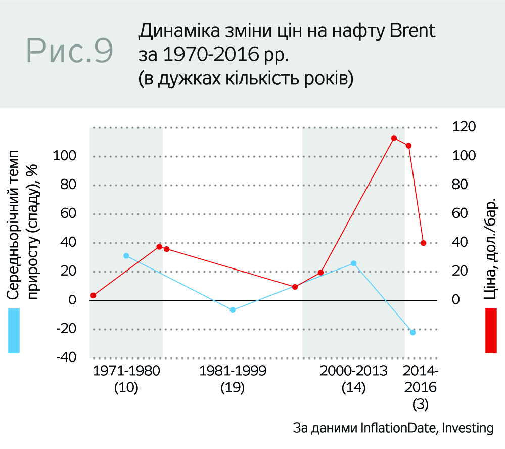 За останні 45 років у світі було два цикли зростання цін на нафту: 1971–1980 рр. і 2000–2013 рр. та один цикл спаду - 1981–1999 рр. У 2014 р. почався другий цикл спаду цін на нафту. Виходячи з попереднього досвіду тривалості циклів, цей цикл може тривати не менше 10 років. Що за цим стоїть - об'єктивна закономірність циклів чи великі ігри сильних світу цього? Досі не доведено. Як не доведено і причини фінансових криз: що це - звичайні прорахунки фінансистів, валютні ігри банкірів, чи чиїсь сценарії?