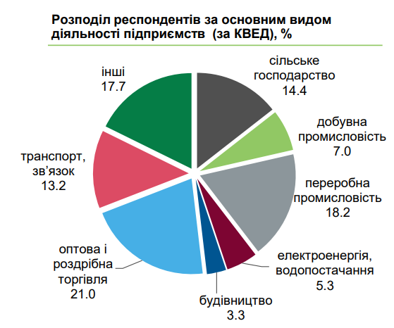 Покращилися інфляційні очікування: у першому кварталі очікувана річна інфляція становила 20.7% порівняно з 23.3% у попередньому кварталі. 46.8% опитаних підприємств вважають, що інфляція за наступні 12 місяців не перевищить 20%. Частка тих, хто очікує на інфляцію понад 30%, зменшилася до 16.2%.