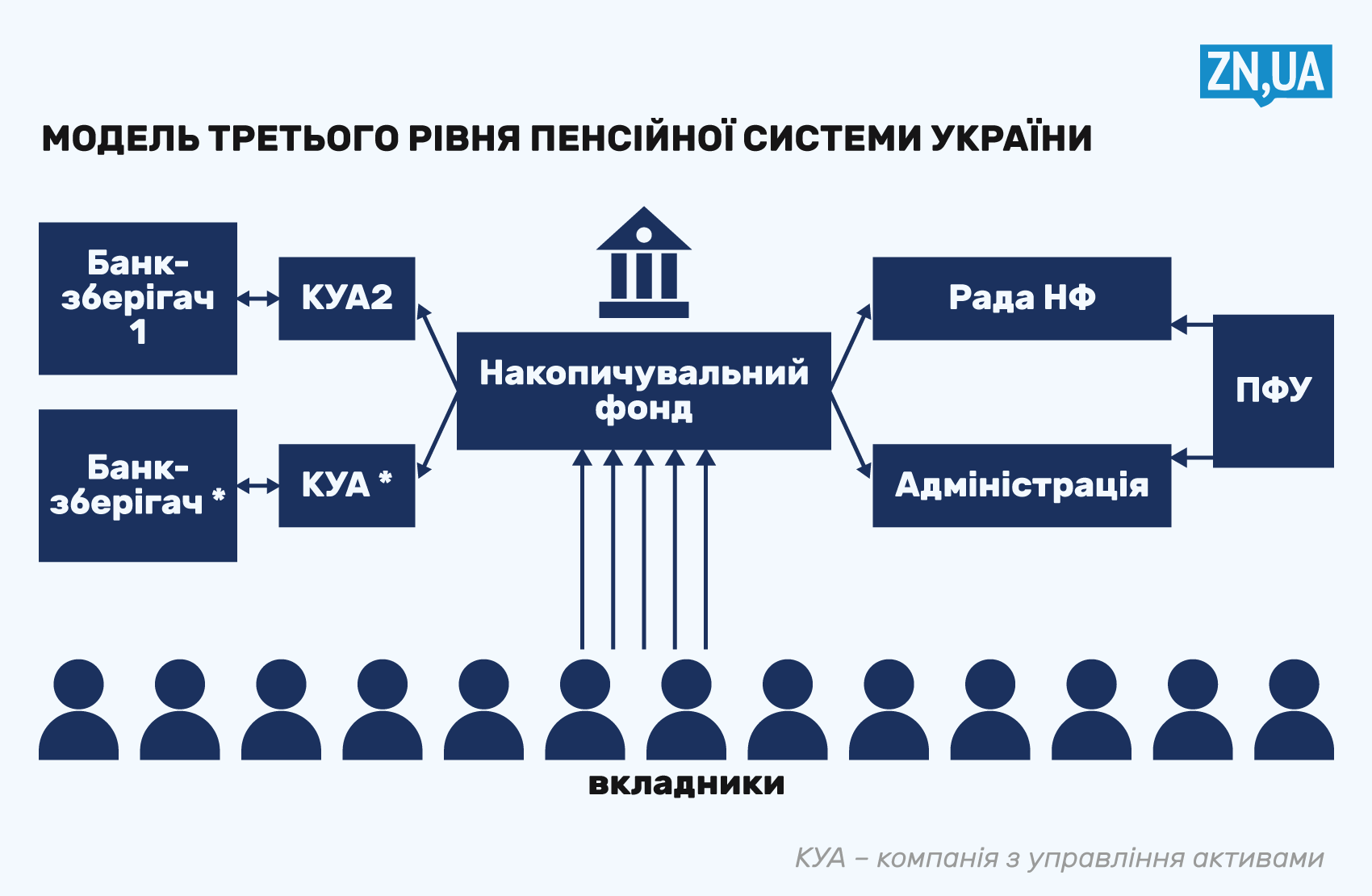 Зараз розглядається така базова модель третього рівня пенсійної системи в Україні (див. інфографіку).