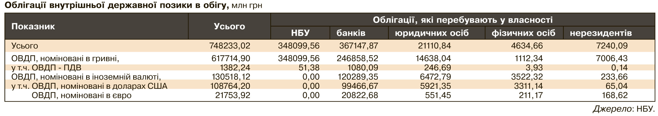 І якщо нерезидентів перш за все цікавлять облігації, номіновані в гривні, які дають їм змогу заробити ще більше, скуповуючи папери в період після девальвації та продаючи, коли гривня зміцнюється, то для українців однозначно переважають валютні ОВДП (див. табл.).