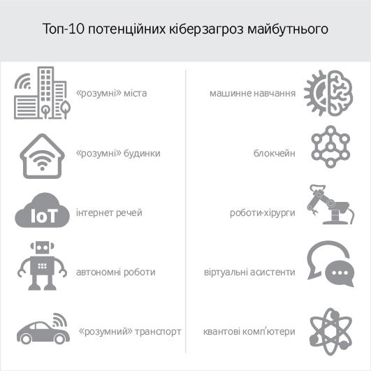 Бурхливий розвиток технологій приховує в собі не тільки додаткові можливості в розвитку суспільства, а й нові ідеї для заробітку кіберзлочинців. Кілька років тому експерти з кібербезпеки готували світ до нових напрямів кібератак, опис яких звучав як розділи фантастичних кіберпанк-романів. Але лише за останні кілька місяців Україна пережила декілька кібератак і за прогнозами їх кількість у майбутньому лише зростатиме.
