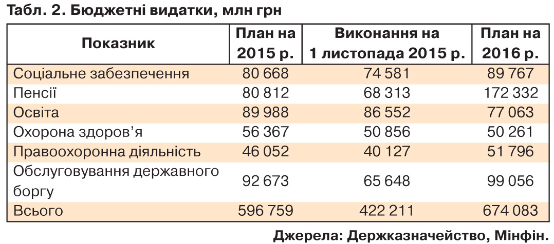 У всьому пакеті бюджетних законів є лише одна норма, яка натякає на реформу соціального забезпечення, монетизацію та верифікацію пільг, що дає змогу центральному органу виконавчої влади одержувати доступ до інформації про стан поточних, кредитних і депозитних банківських рахунків осіб, які одержують пільги від держави. Усе. Решта - не монетизація, не реформа, не верифікація, а банальна передача фінансування пільг на місця. Причому без надання необхідних для цього коштів. При цьому держбюджет-2016 завдяки зниженню ЄСВ став не просто соціальним, а суперсоціальним. Близько 40% його видатків займають соціальні та пенсійні статті. У 2015 р. вони становили майже 27%. Однак підвищення якості життя очікувати не слід.