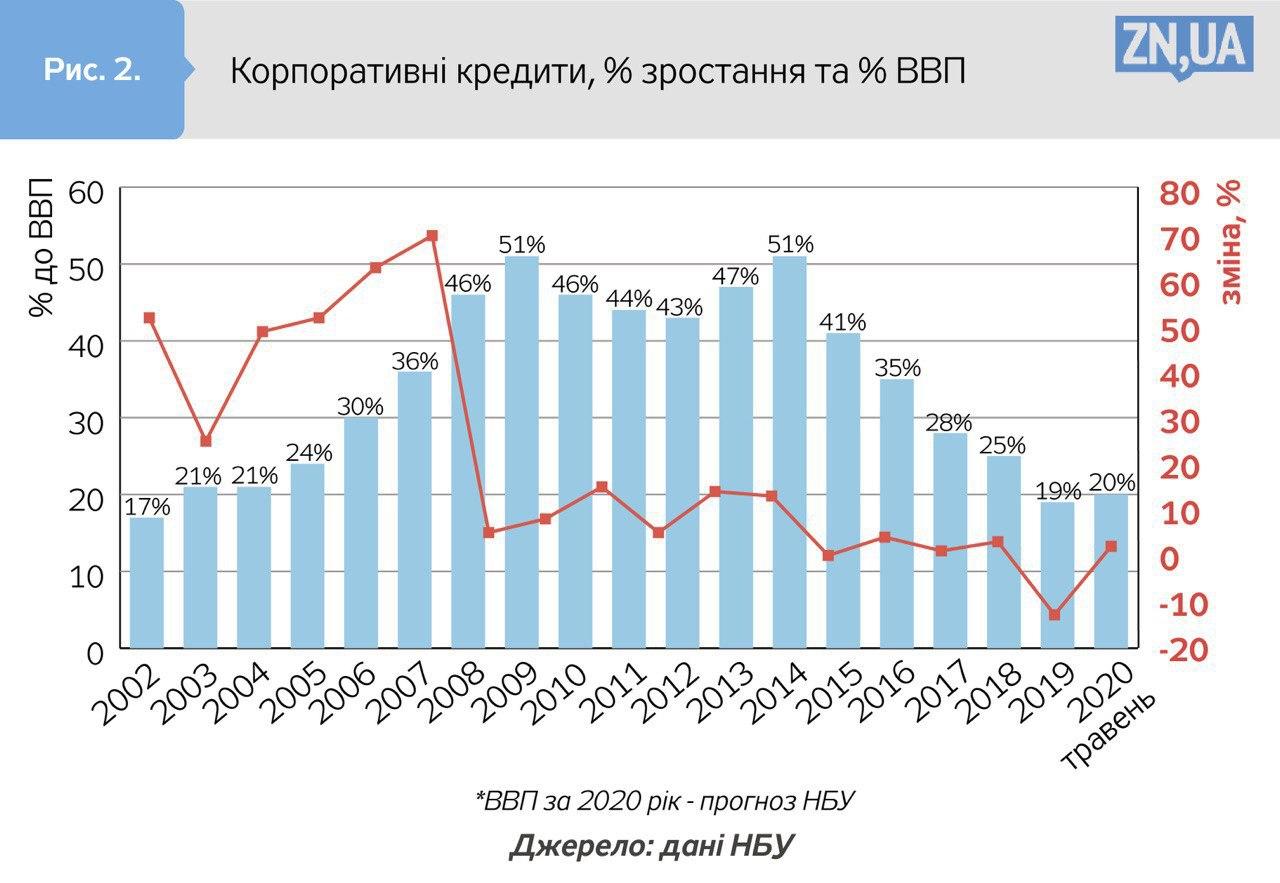 При цьому між кризами 2008–2009 і 2014–2015 років економіка України майже не зростала, а обсяги кредитування збільшувалися в середньому темпами близько 10%. Така різниця навряд чи пояснюється в категоріях попиту на кредит. Кредитування інсайдерів перетворилося на системну проблему. З одного боку, воно стало символом хижацької експансії політичних бізнес-груп. З іншого — чи не єдиною можливістю забезпечити фінансування такої експансії в умовах фрустрації верховенства права та тотального рейдерства. Після ідентифікації власників банків та їх кінцевих бенефіціарів картина стала іншою. Жорсткі обмеження на інсайдерське кредитування та започатковані вимоги до банків щодо зниження обсягів пов’язаних кредитів привели до поступового зниження даного показника. Але абсолютно не випадково загальне нарощування обсягів корпоративного кредитування сповільнилося. Місткість кредитного ринку в умовах обмежень виявилася значно меншою, ніж тоді, коли кредитування спиралося на маніпулятивні/шахрайські чи політично вмотивовані практики.