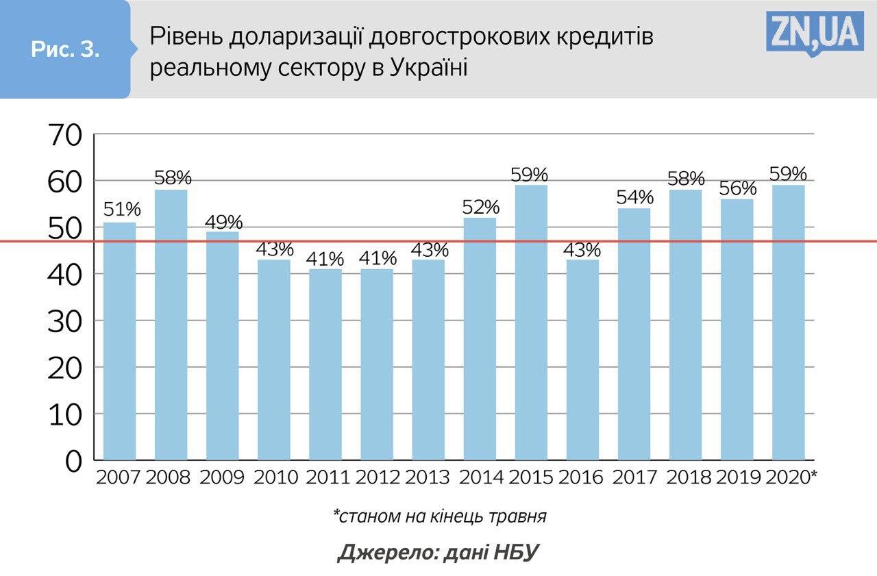 Цю цифру часто піддають анафемі, намагаючись представити як явне відображення «злочинної жорсткості» монетарної політики. Та якщо взяти до уваги аналогічний показник країн ЄС, то він буде на рівні 62% (зовнішні джерела — 35%). Отже, різниця насправді мізерна. І це при тому, що європейські компанії функціонують у середовищі значно нижчих процентних ставок, зовсім з іншим рівнем курсової вразливості, а порівняння верховенства права та інститутів захисту прав кредиторів, мабуть, просто зайве.
