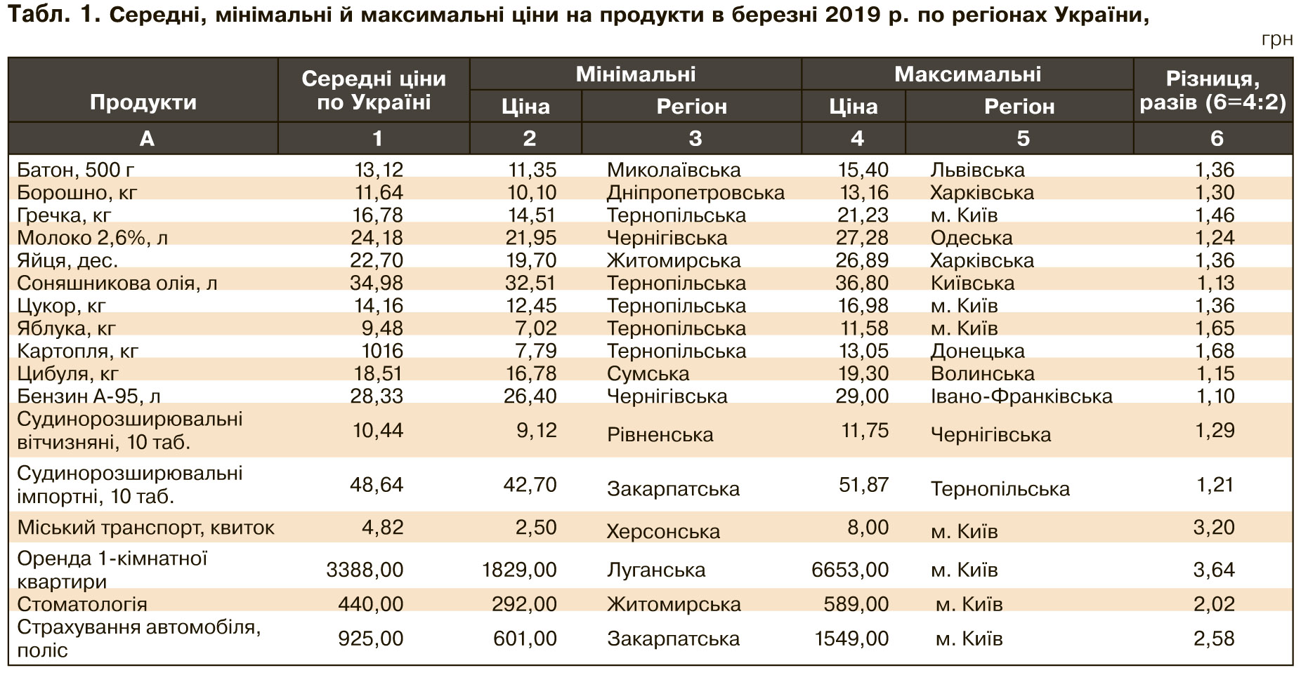 Публіковані дані про середні ціни можна використовувати у двох напрямках: зміна цін у динаміці й порівняння цін по регіонах.