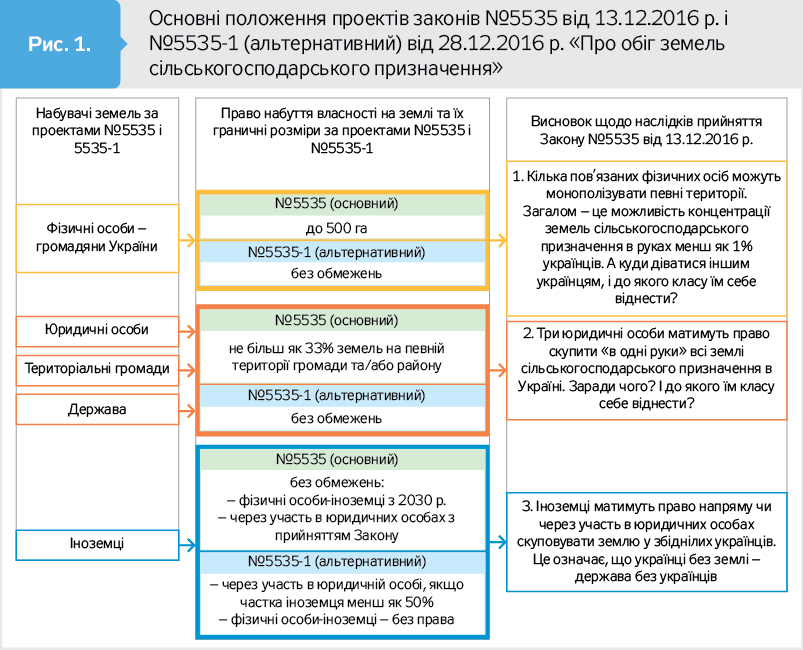 На офіційному сайті Верховної Ради України з пропозицій щодо нового законодавства про обіг землі є тільки дві не такі вже й нові - проект №5535 від 13 грудня 2016 р. і альтернативний №5535-1 від 28 грудня 2016 р. (див. рис. 1 на 6-й стор.).
