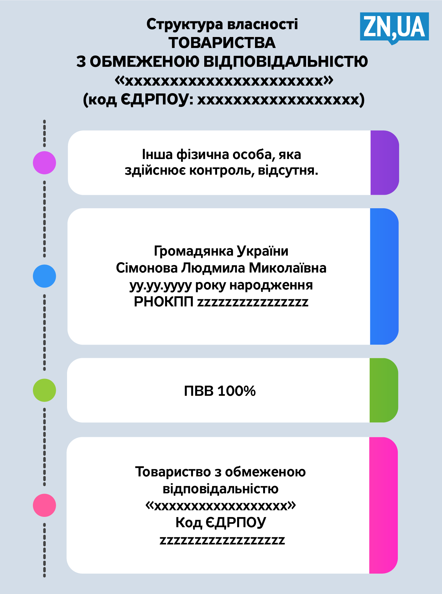 Наприклад, якщо власник одна людина, то так, як показано на рисунку.