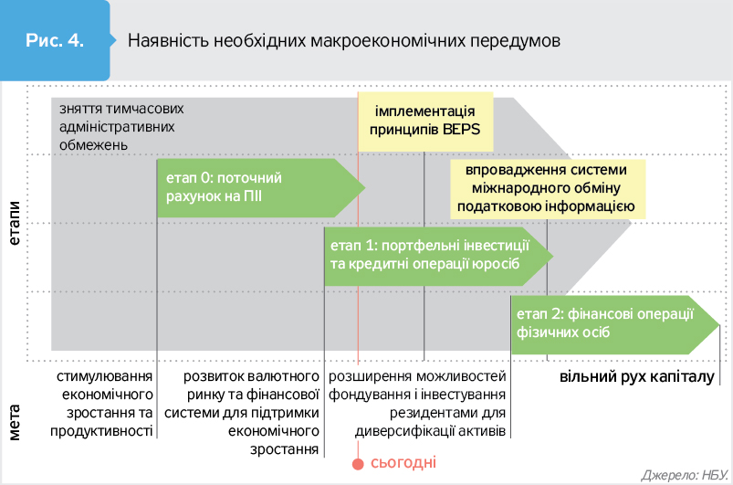 З огляду на це Національний банк ще наприкінці 2015 р. вперше в Україні ввів у публічну дискусію концепцію розбудови ефективного податкового регулювання відповідно до рекомендацій ОЕСР та ініціював план їх імплементації до дорожньої карти з лібералізації валютного регулювання (рис. 4).