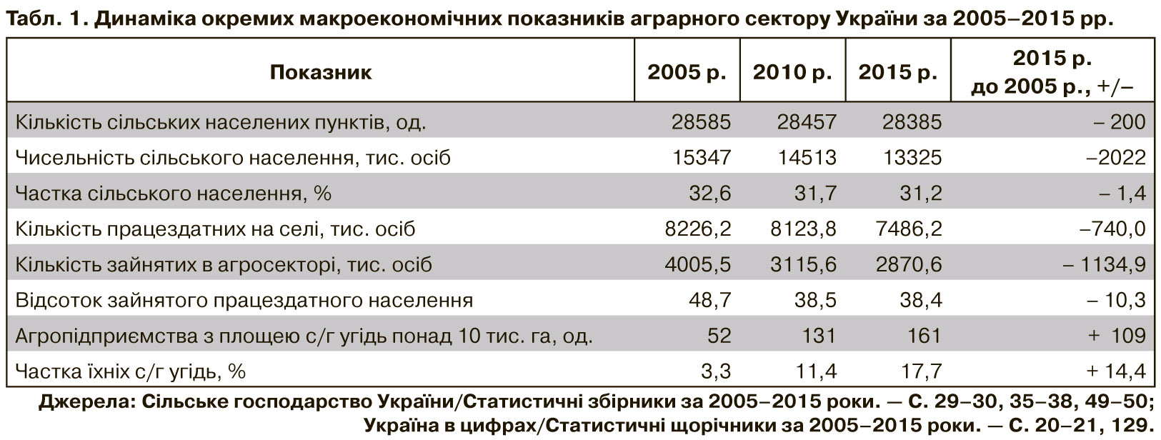 Попри інтенсивне зростання впродовж цього десятиліття кількості надвеликих сільгосппідприємств, суттєве скорочення на селі кількості населених пунктів, як і сільського населення (див. табл. 1) на совісті не лише олігархату. Деструктивну роль тут відіграла й низка інших чинників. Однак ігнорувати радше негативний, ніж позитивний вплив великих агропідприємств на динаміку наведених показників підстав немає, бо чогось зазначені зміни відбувалися в унісон з їхнім зростанням і збільшенням площі сільськогосподарських угідь. І якщо раніше зменшення чисельності сільського населення можна було пояснювати його внутрішньою міграцією на "розбудову комунізму", то нині це не підходить з банальної причини: в цілому чисельність населення в Україні теж зменшується.